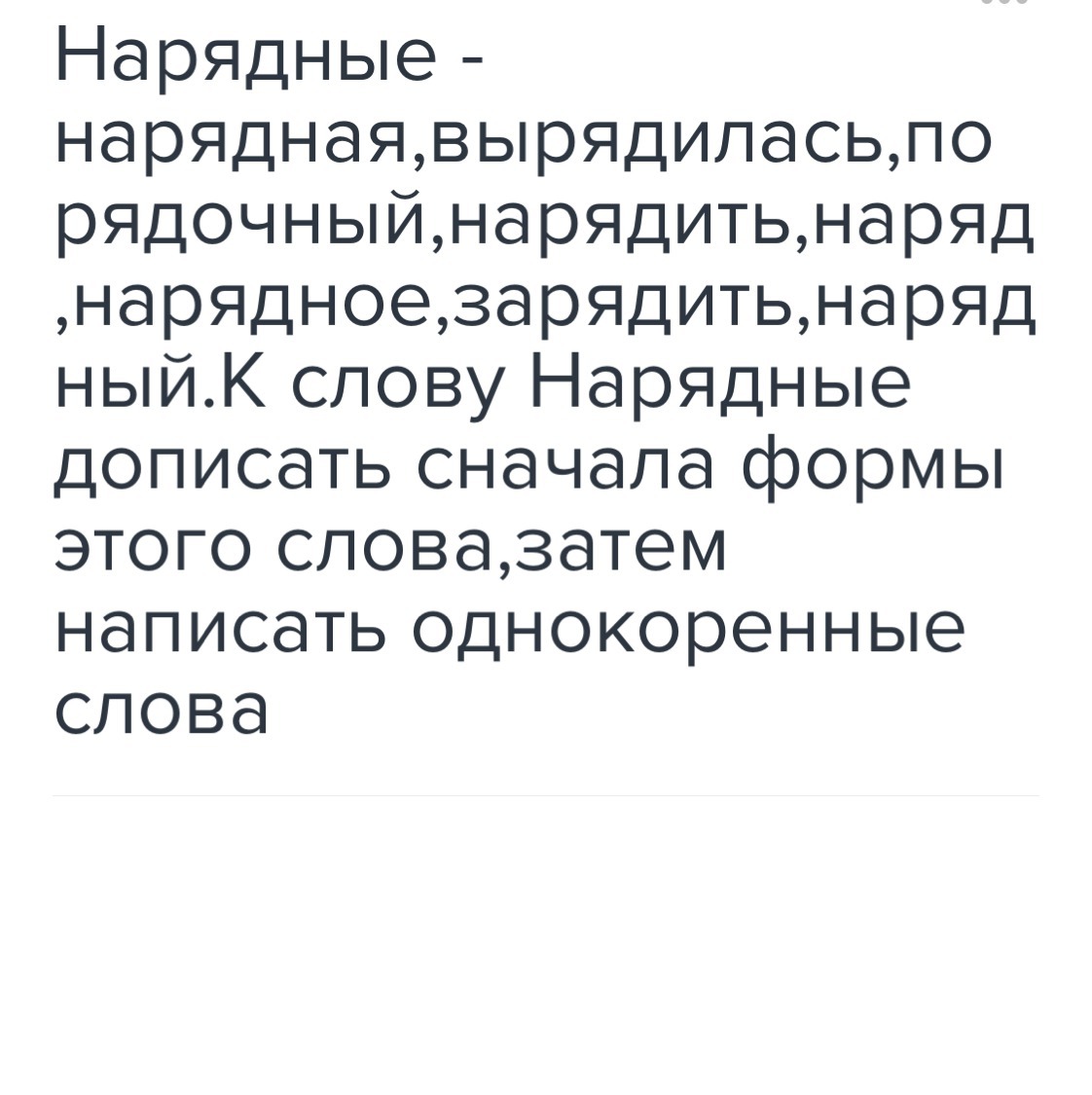 К слову нарядные дописать формы слова,затем однокоренные