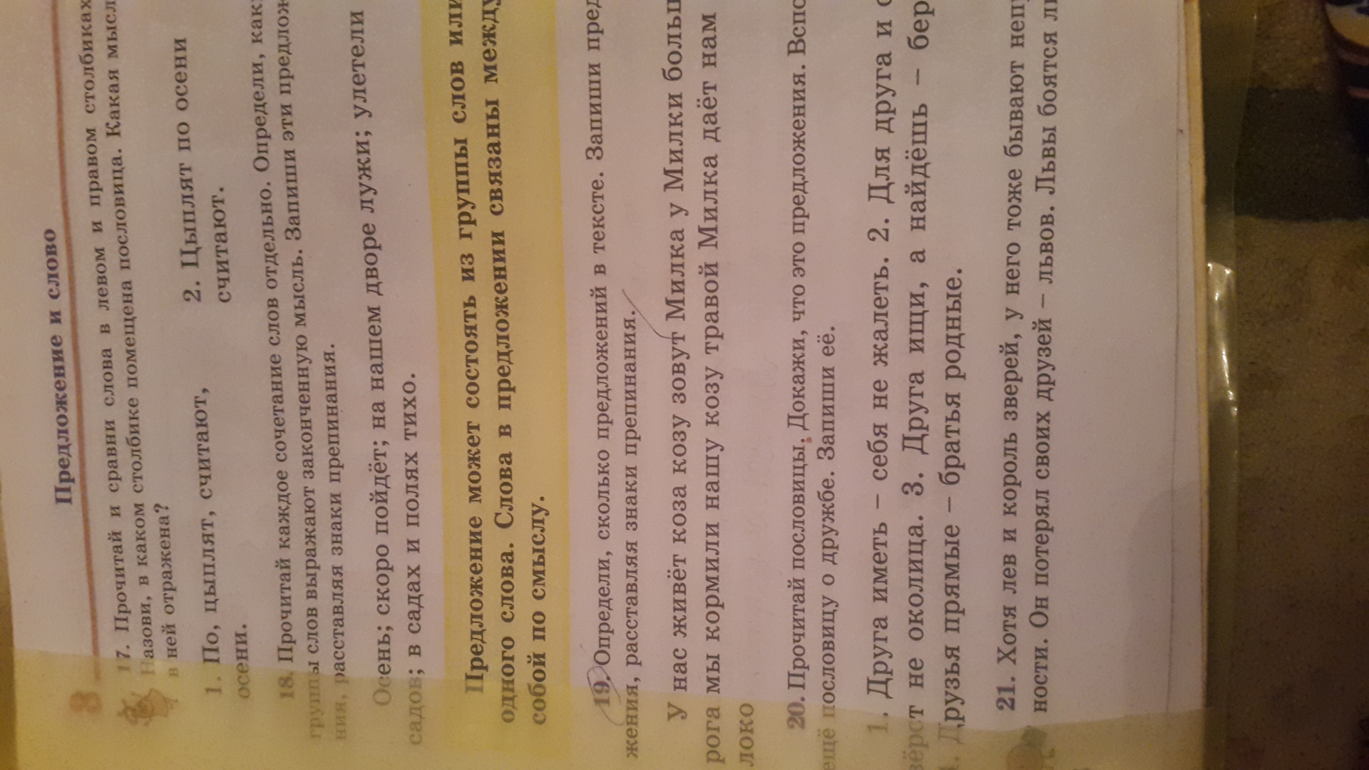 1) У нас живет коза. 2) Козу зовут Милка. 3) У Милки большие рога. 4) Мы кормили нашу козу травой. 5)Милка даёт нам молоко.