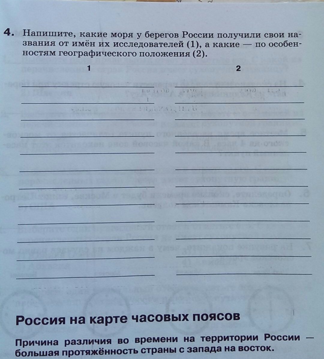 Напишите, какие моря у берегов России получили свои названия от имен их исследователей (1), а какие - по особенностям географического положения (2).