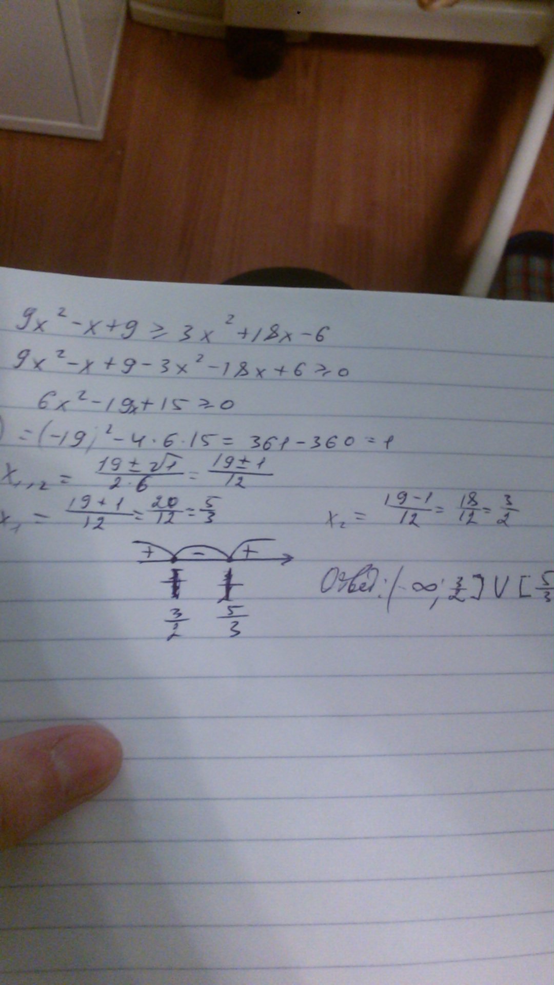 9x^2-x+9 больше или равно 3x^2+18x-6