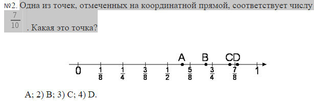 Точка В соответствует числу 7/10