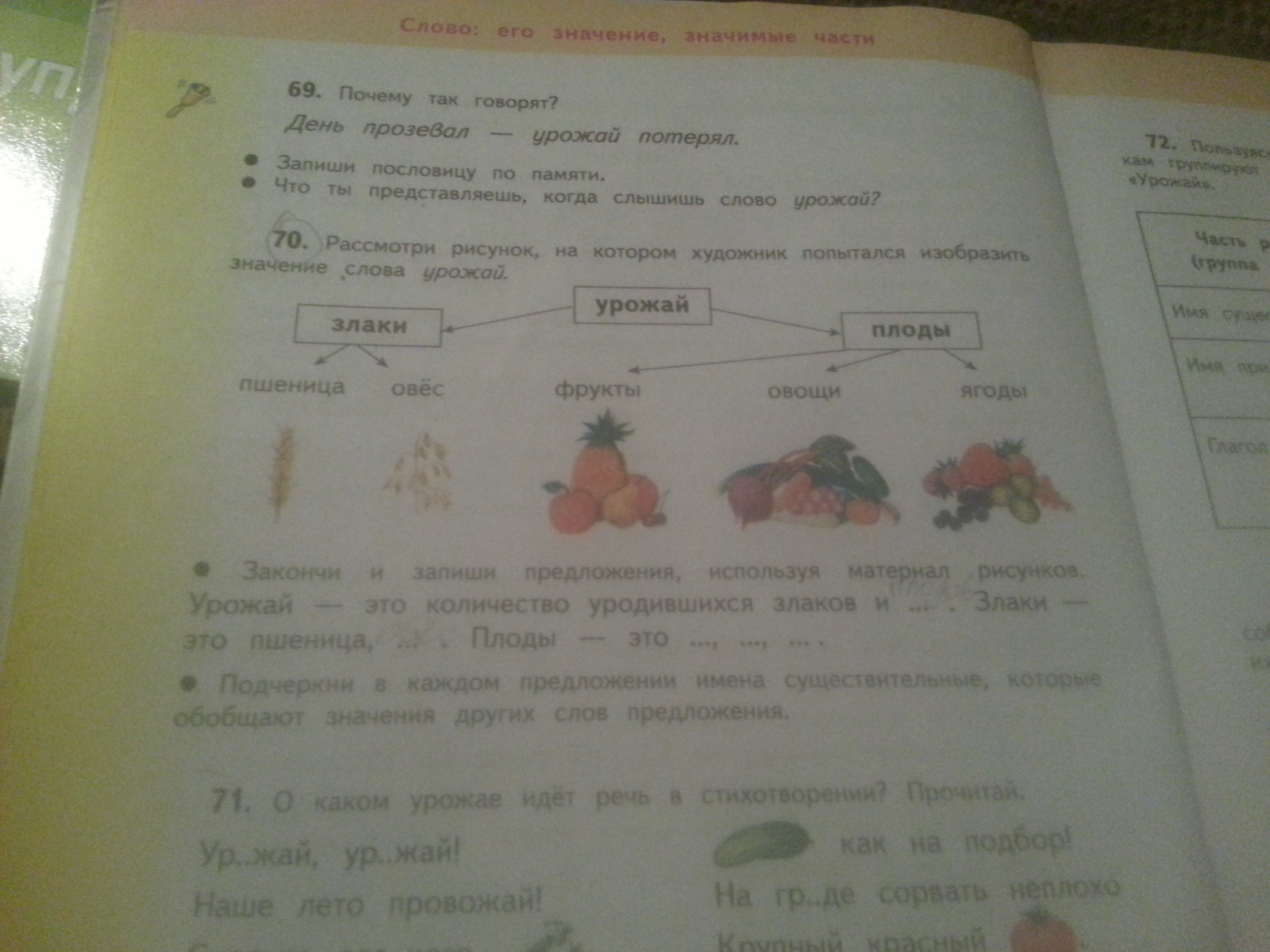 Урожай(существ) - это количество уродившихся злаков и плодов. Злаки(сущест)- это пшеница и овес. Плоды(сущест) - это фрукты, овощи, злаки.