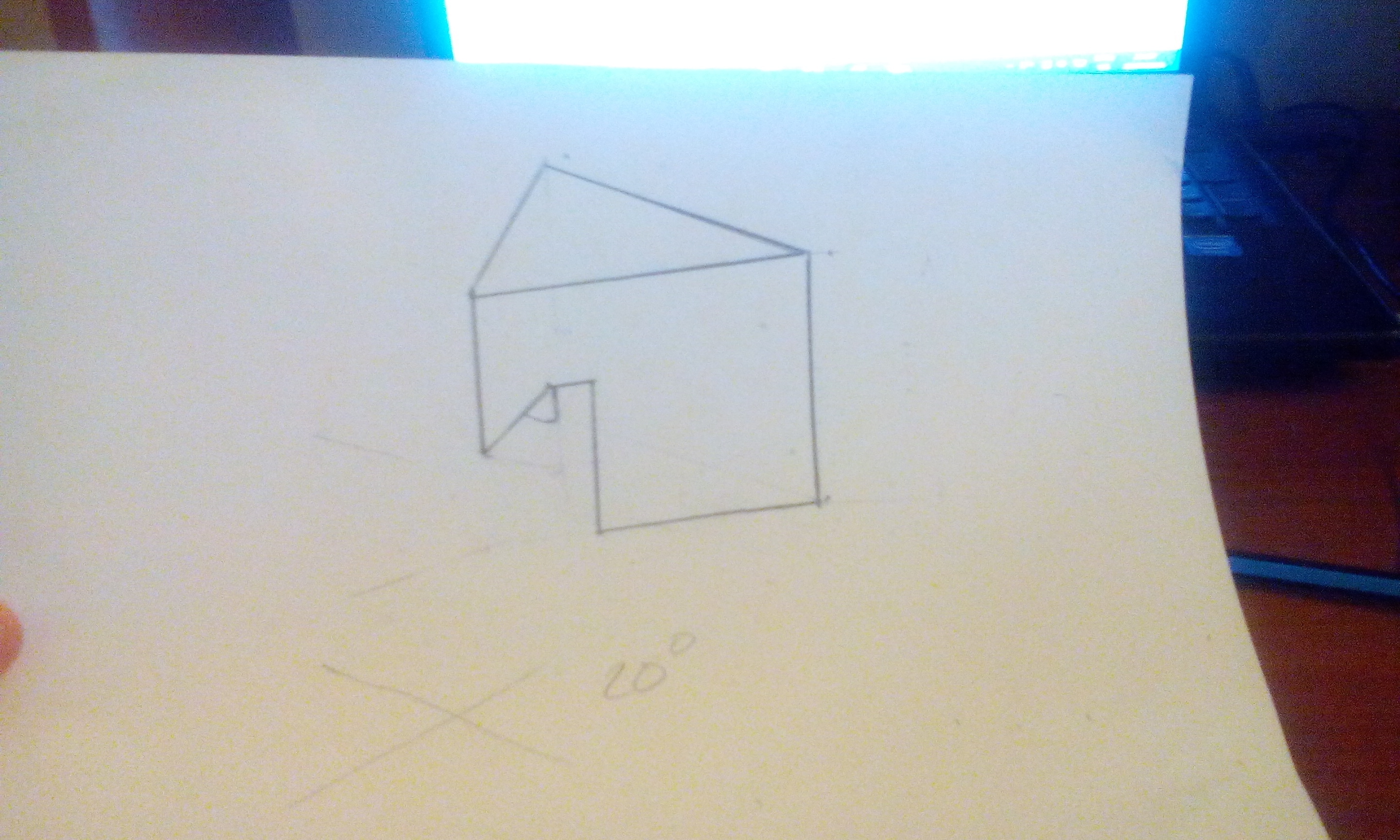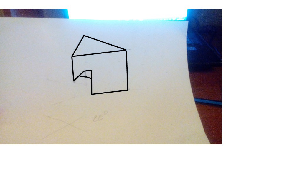 1)чертишь оси,каждую по 20 градусов как на рисунке слева в углу,дальше надо отложить размеры треугольника,берёшь размеры с вида сверху потом на оси,та которая смотрит из правого верхнего угла в нижний откладываешь ширину треугольника,к примеру это 16мм,раздели 16 по полам это 18,вот,Оси перерещиваются,ставь точку в центр перекрестия и иди по оси, тоесть отложи 18 мм по оси вправо и в лево точку.