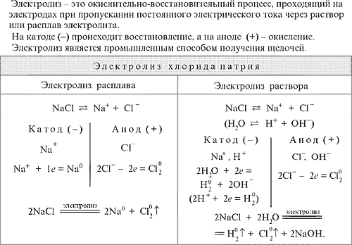 Помогите пожалуйста!! Электролиз. Химизм. Напишите отличия химизма электролиза хлорида натрия в расплаве и растворе.