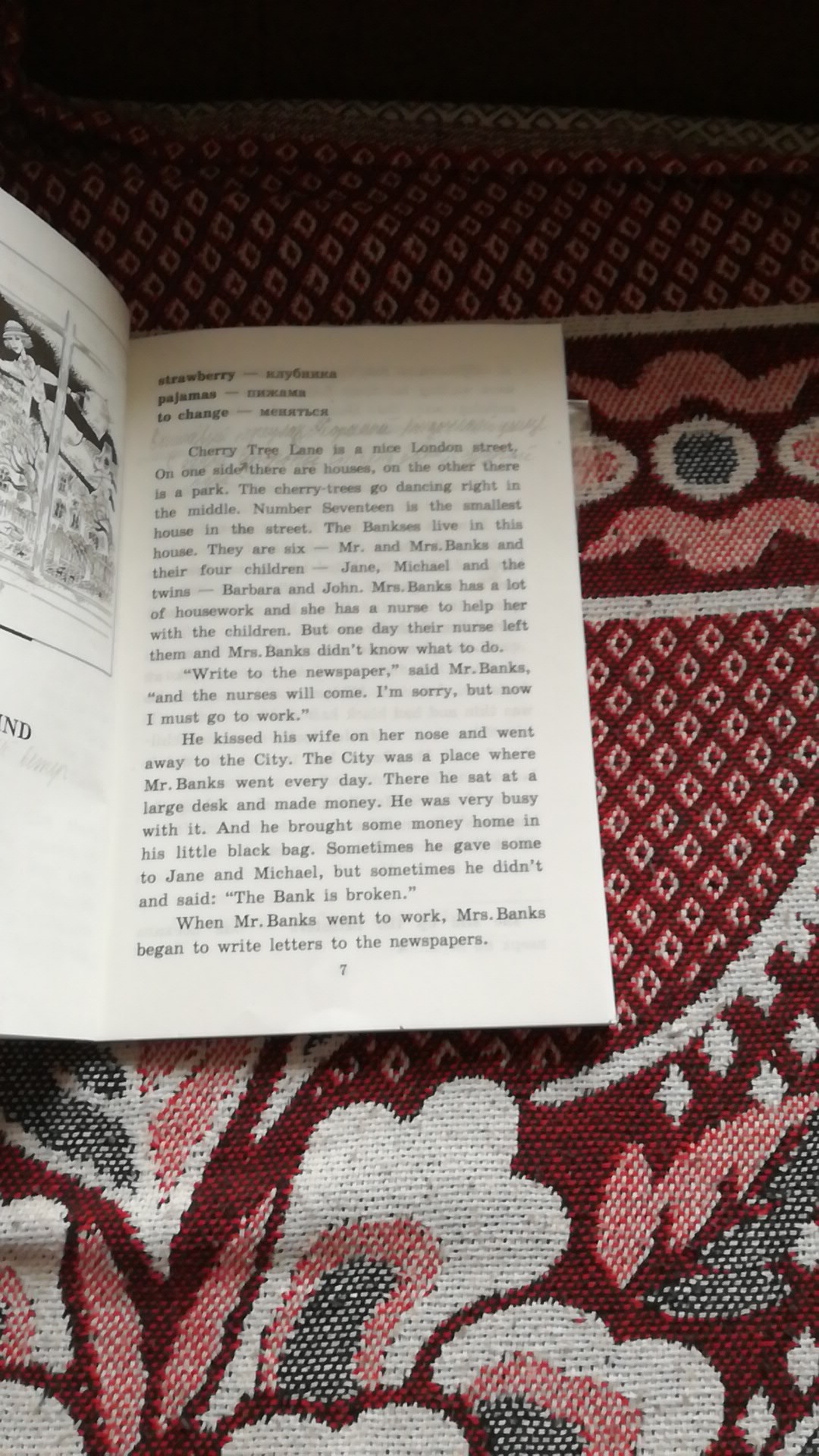 "Подай объявление в газету, - сказал мистер Бэнкс - и кто-нибудь придет. Извини, но сейчас мне надо вернуться к работе."