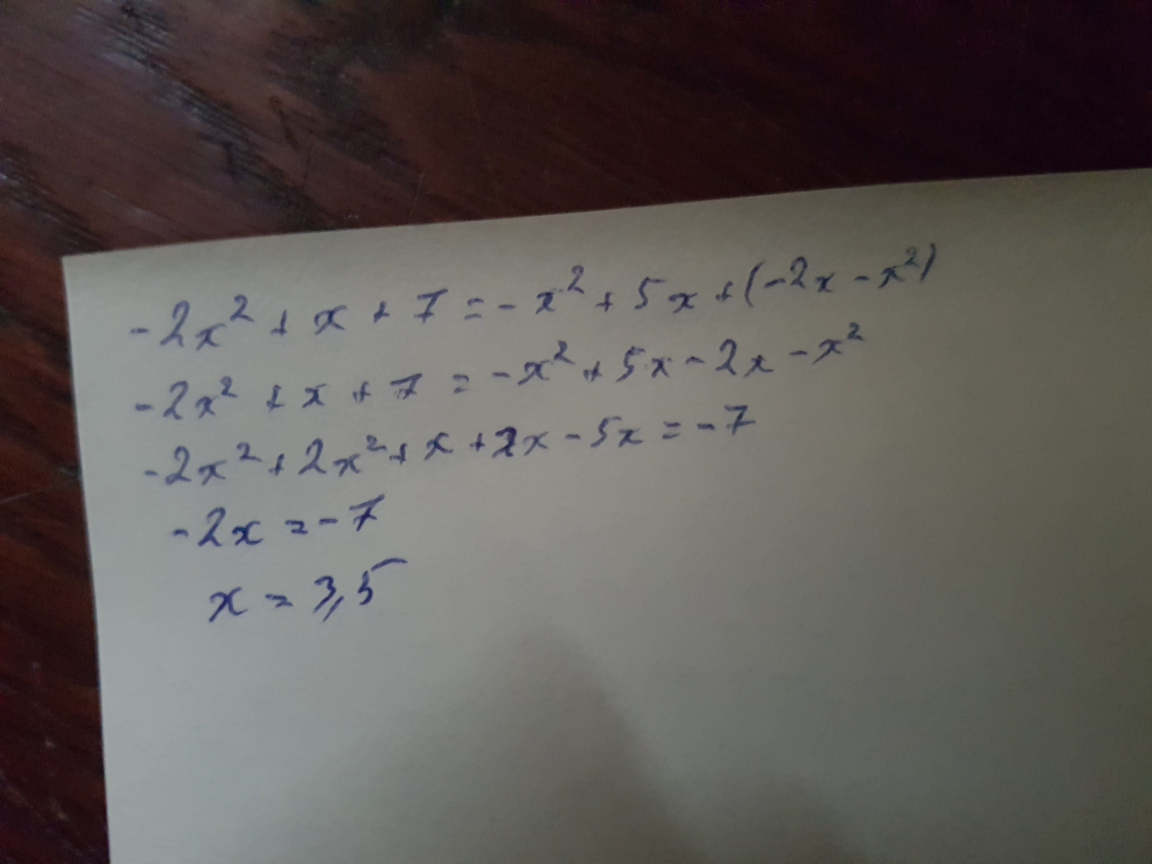 -2x^2 + x+ 7 = -x^2 + 5x+(-2x-x^2)