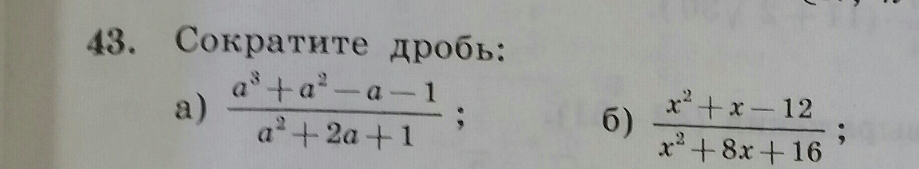 б) Числитель разложи на множители, получишь (х+4)(х-3). Знаменатель сверни по формуле, получишь (х+4)^2. Сократи, получишь х-3/х+4