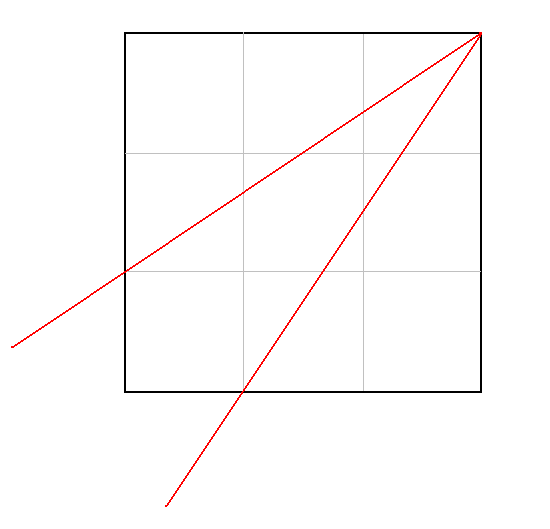 как провести две прямые через вершину квадрата, чтобы разделить его на три фигуры, площади которых равны.