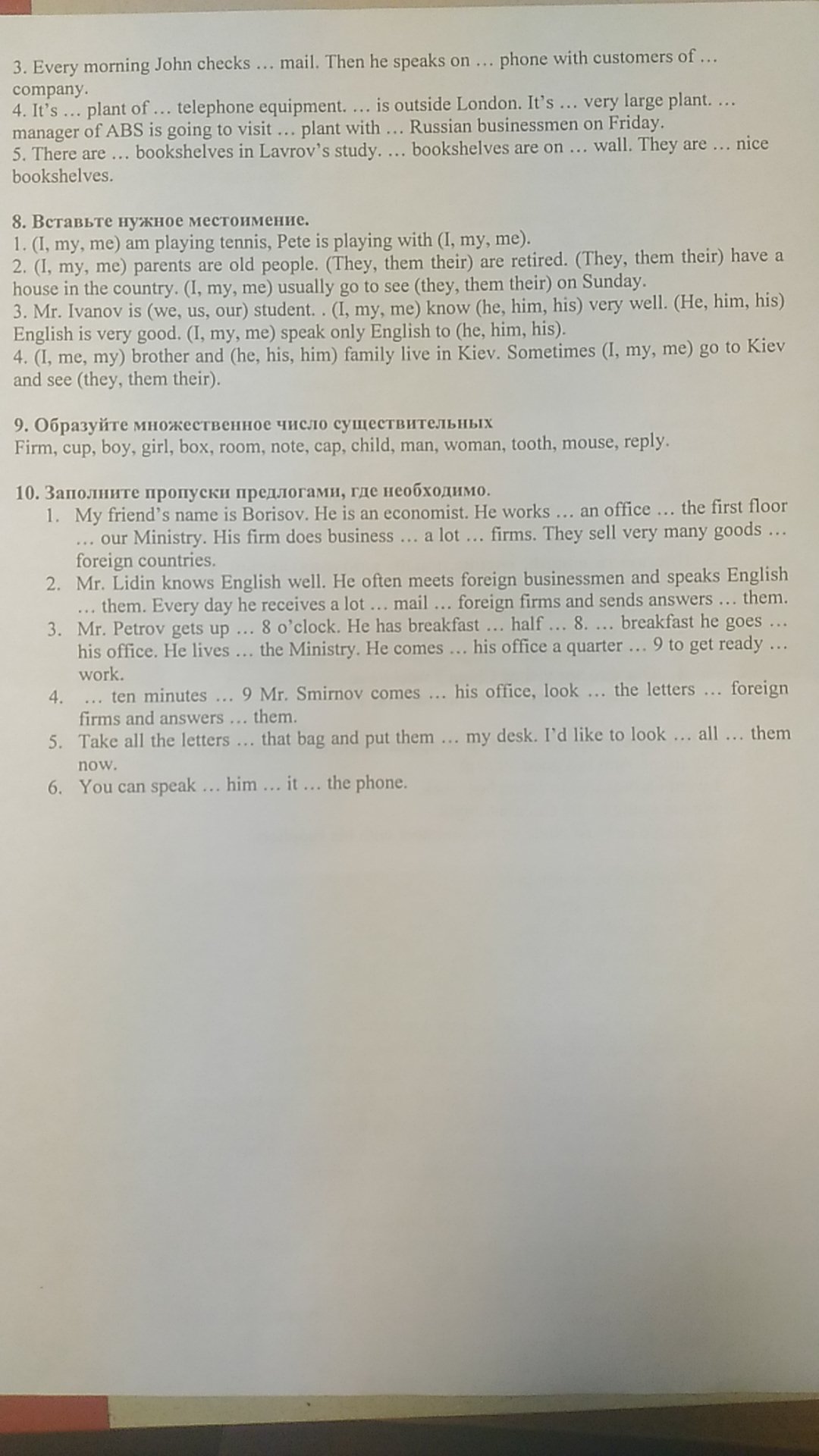 1 on 2 in 3 in 4 of 5 a 7 of 8 in 10 at 11 at 12 past 13 a.m 14 on 15 on 16 in 17 past 18 a 19 a 21 in 22 in 25 in 26 on 27 on ( в числах, которые я пропустила, не нужны артикли)