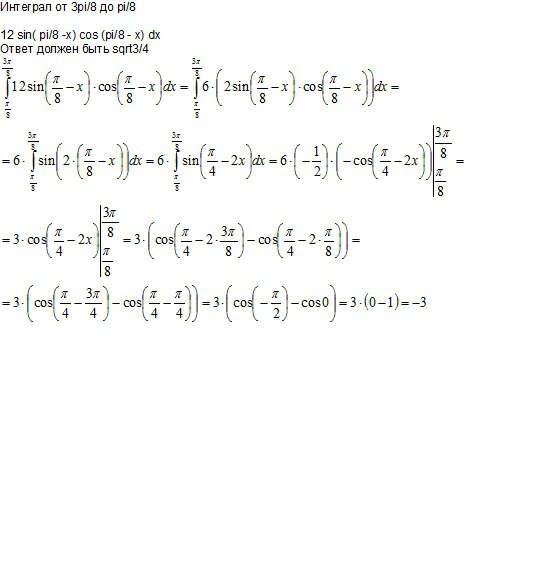 Интеграл от 3pi/8 до pi/8
