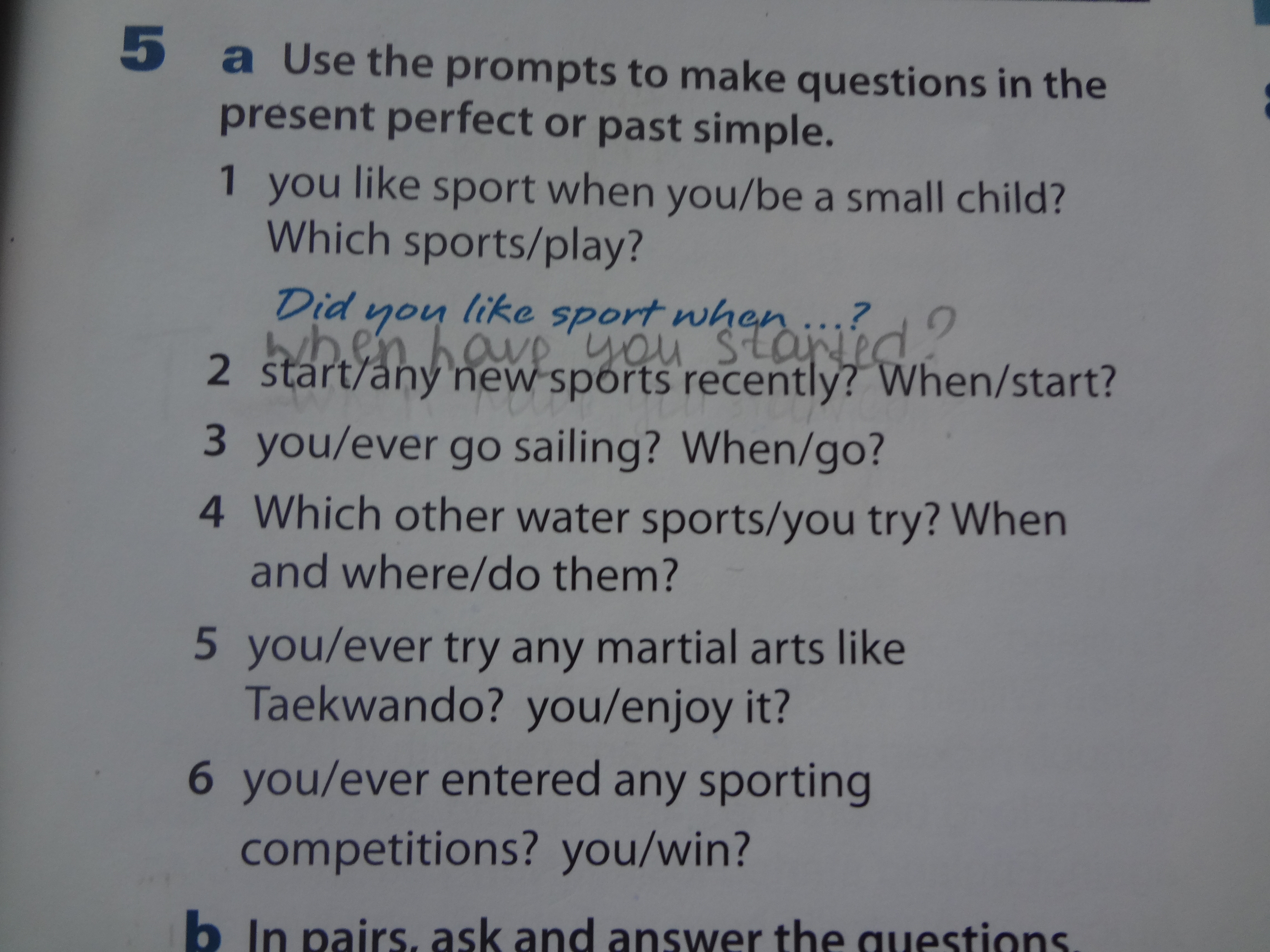 2 Have you started any sports recently? When have you started?