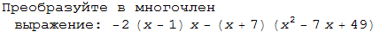 =-2х^2+2х-(x^3 - 7x^2 + 49x-7x^2+49x-343)=-2x^2 + 2x - x^3 + 7x^2 -49x + 7x^2 - 49x +343= -x^3 + 12x^2 -96x +343