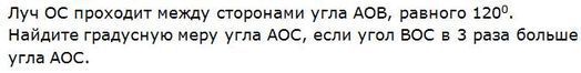 AOC=х BOC=3х 120=х+3х 4х=120 х=120/4 х=30 AOC=30 градусов