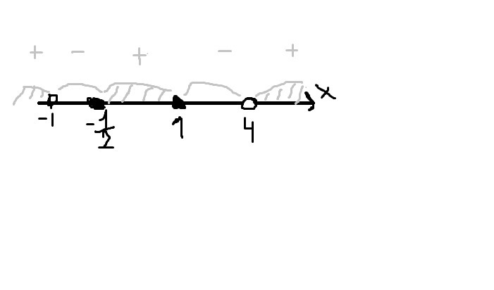 Ответ: x∈(-∞;-1)∪[0.5;1]∪(4;+∞)