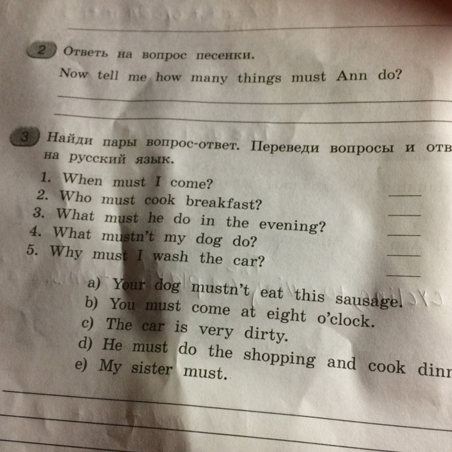3.что он должен делать вечером?. d.он должен сходить в магазин и приготовить ужин.