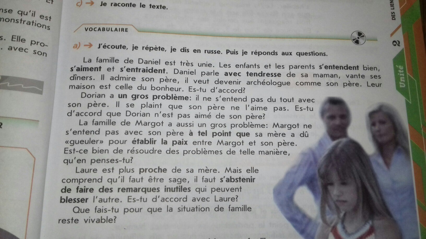 Тогда семья е Даниила очень объединяет. Дети эль родители получают вместе и помогать друг другу любовь. Даниил говорит с мамой нежностью, его дом satte Он восхищается своего отца, он хочет стать археологом, как его отец, что их счастье. Дориан есть большая проблема: нет никакого соглашения вообще со своим отцом. Он жалуется на то, что его отец не любил Вы согласны, что Дориан не любил своего отца? Семья Margot также есть большая проблема: Марго не намерена с его отцом до того, что его мать должна была "рупор", чтобы установить мир между Маргоша и ее отцом. Является ли, что решать проблемы таким образом, что вы думаете? Laure ближе к своей матери. Но она понимает, что это должно быть хорошо, должны воздерживаться от ненужных замечаний, которые могут причинить боль другому. Вы согласны с Лорой? Что вы делаете для семейной ситуации остается пригодным для жизни?