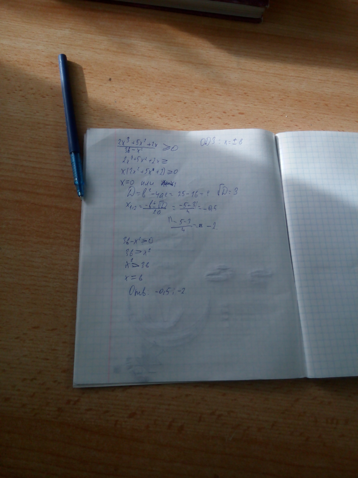 помогите пожалуйста, 2x^3+5x^2+2x/36-x^2 больше или равно 0