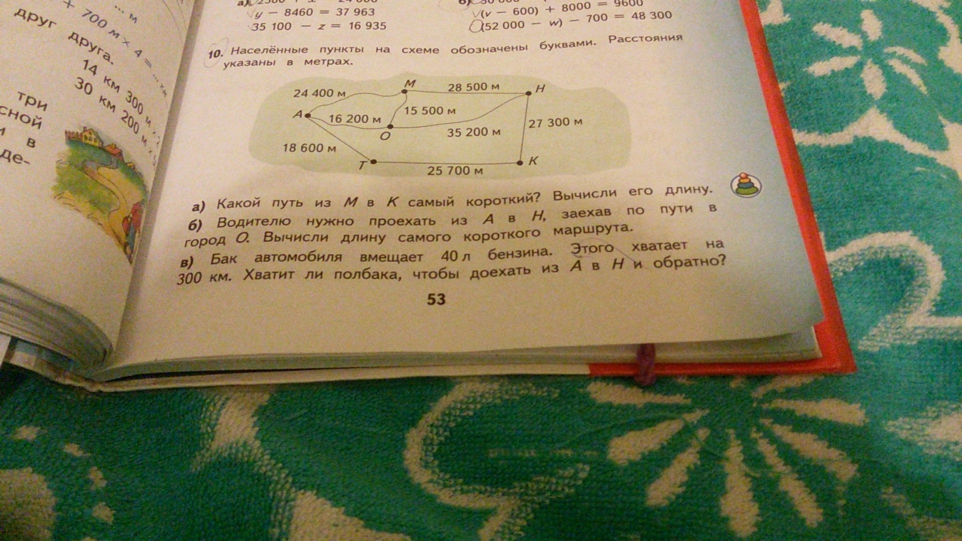 б) самий короткий из О в Н. Из А в Н 51 400м