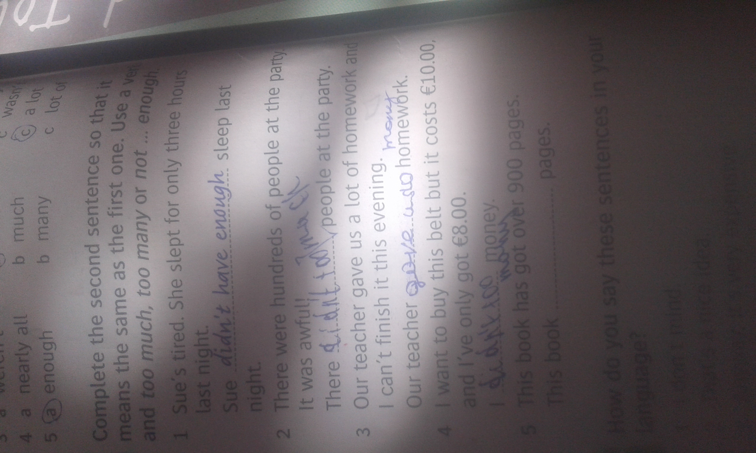 Вы не ответили только на 9. Но сделали много ошибок. 2 должно выглядеть так: There were to much people at the party. Т.к. "People" неисчесляемое существительное во мн.ч.