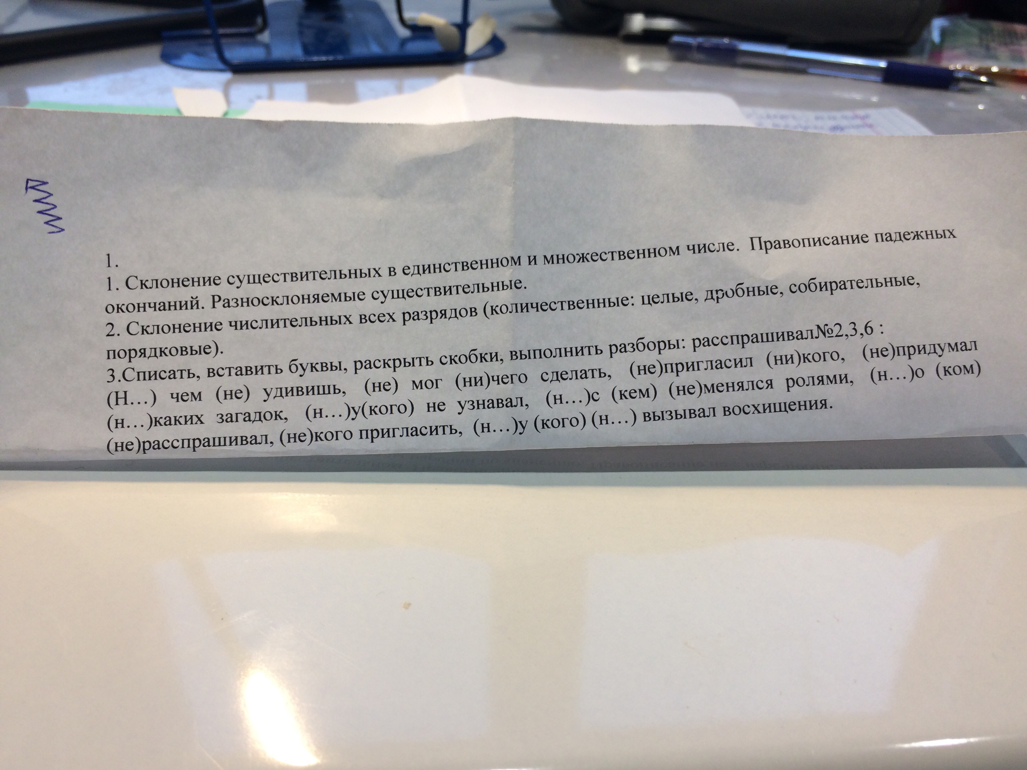 Ничем не удивишь, не мог ничего сделать, не пригласил никого, не придумал никаких загадок, не у кого не узнавал, не с кем не менялся ролями, ни о ком не расспрашивал , некого пригласить, ни у кого не вызывал восхищения