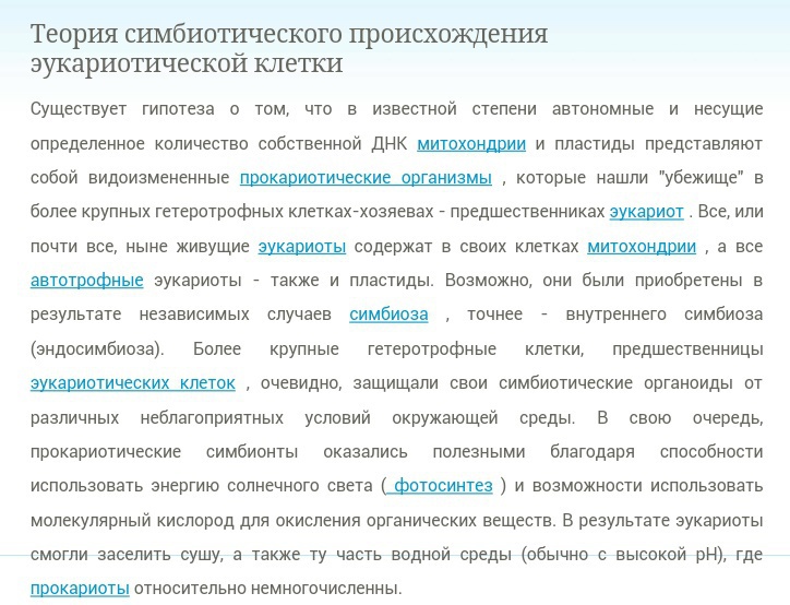 — существующие в науке предположения о путях перехода от пробионта (первичной живой клетки) к настоящей растительной и животной клетке. Наиболее интересны две точки зрения: первая - с внутриклеточном происхождении органоидов из мембранных систем, вторая — о симбиотическом происхождении двухмембранных органелл митохондрий и хлоропластов. Согласно первой гипотезе все органеллы клеток образуются или непосредственно из мембран эндоплазматическон сети (аппарат Гольджи, сферосомы, лизосомы), или из ядра путем отделения частичек ядерного вещества, окруженных двойной мембраной ядерной оболочки (митохондрии, пластиды). Вторая гипотеза предполагает, что на уровне протоклетки происходил фагоцитоз, в результате которого были захвачены гетеротрофные бактерии и автотрофные синезеленые, однако они не подвергались расщеплению пищеварительными ферментами, а вошли в симбиоз.