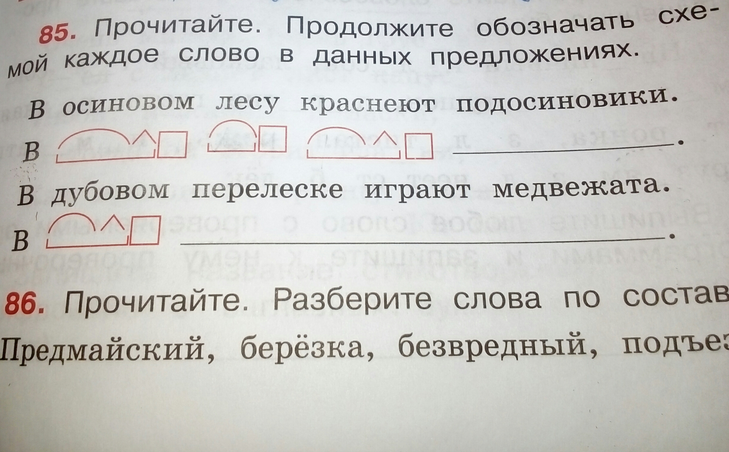 Прочитайте. Продолжите обозначать схемой каждое слово в данных предложениях.
