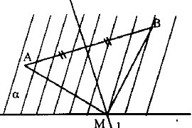 Построение: 1. Строи отрезок АВ 2. Стром 1_|_ АВ, где 1 серединный перпендикуляр к отрезку АВ 3. Пересекает в точке М 4. Точка не лежащая на отрезке