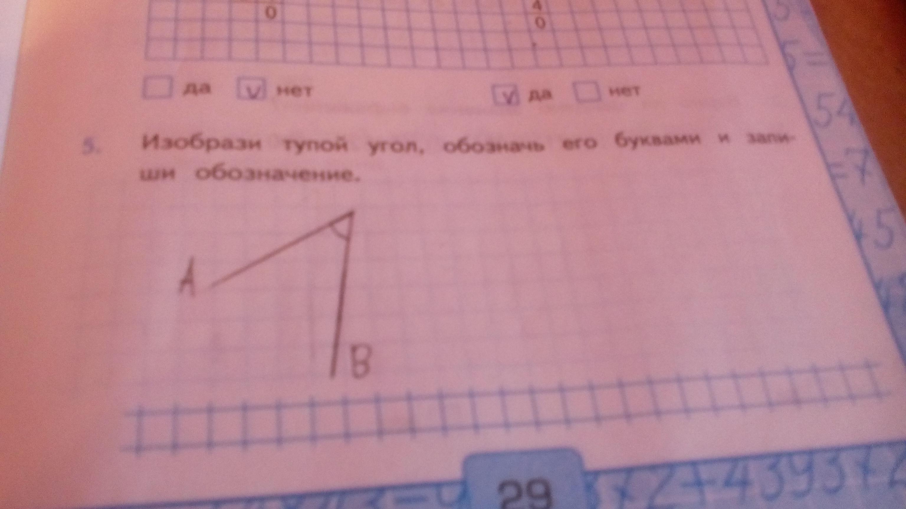 Изобрази тупой угол,обознач его буквами и запищи обозначение(угол нарисовала)