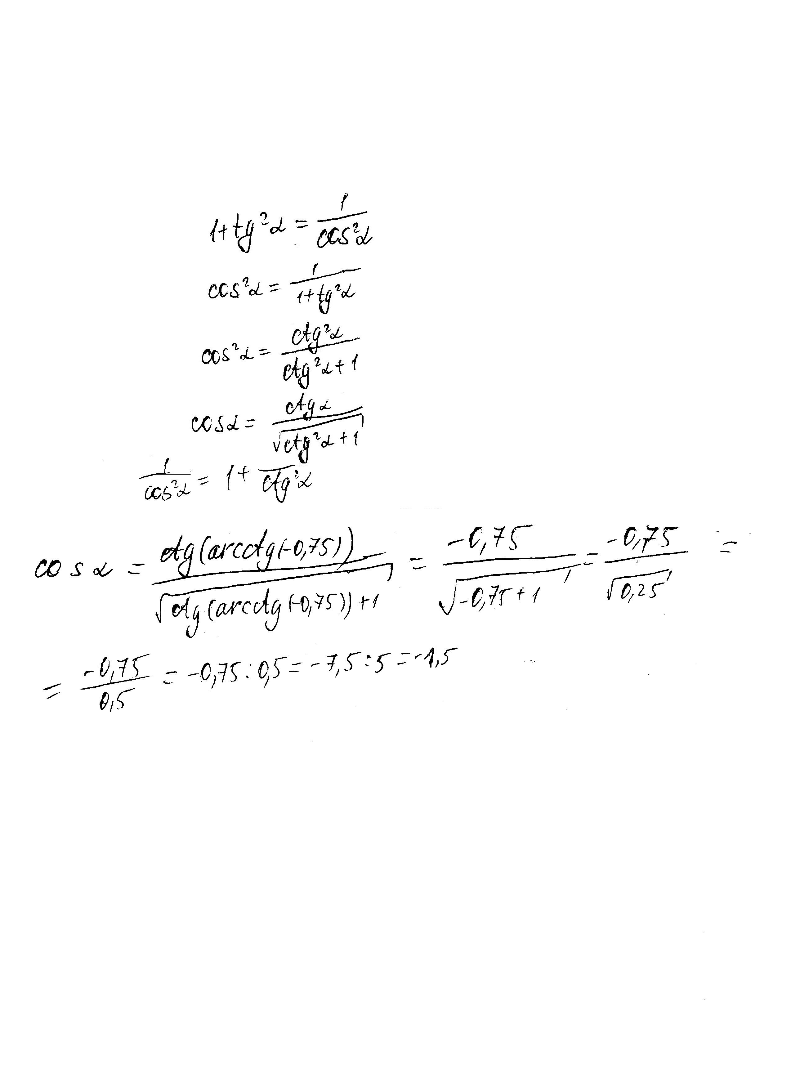 Вычислить cos(arcctg(-0.75)