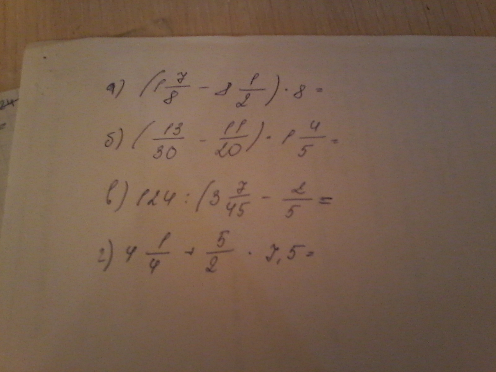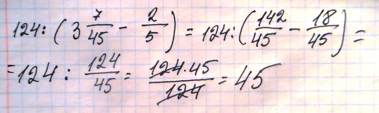 3) 124: (142/45 - 2/5) = 124 :( 124/45 )= 45