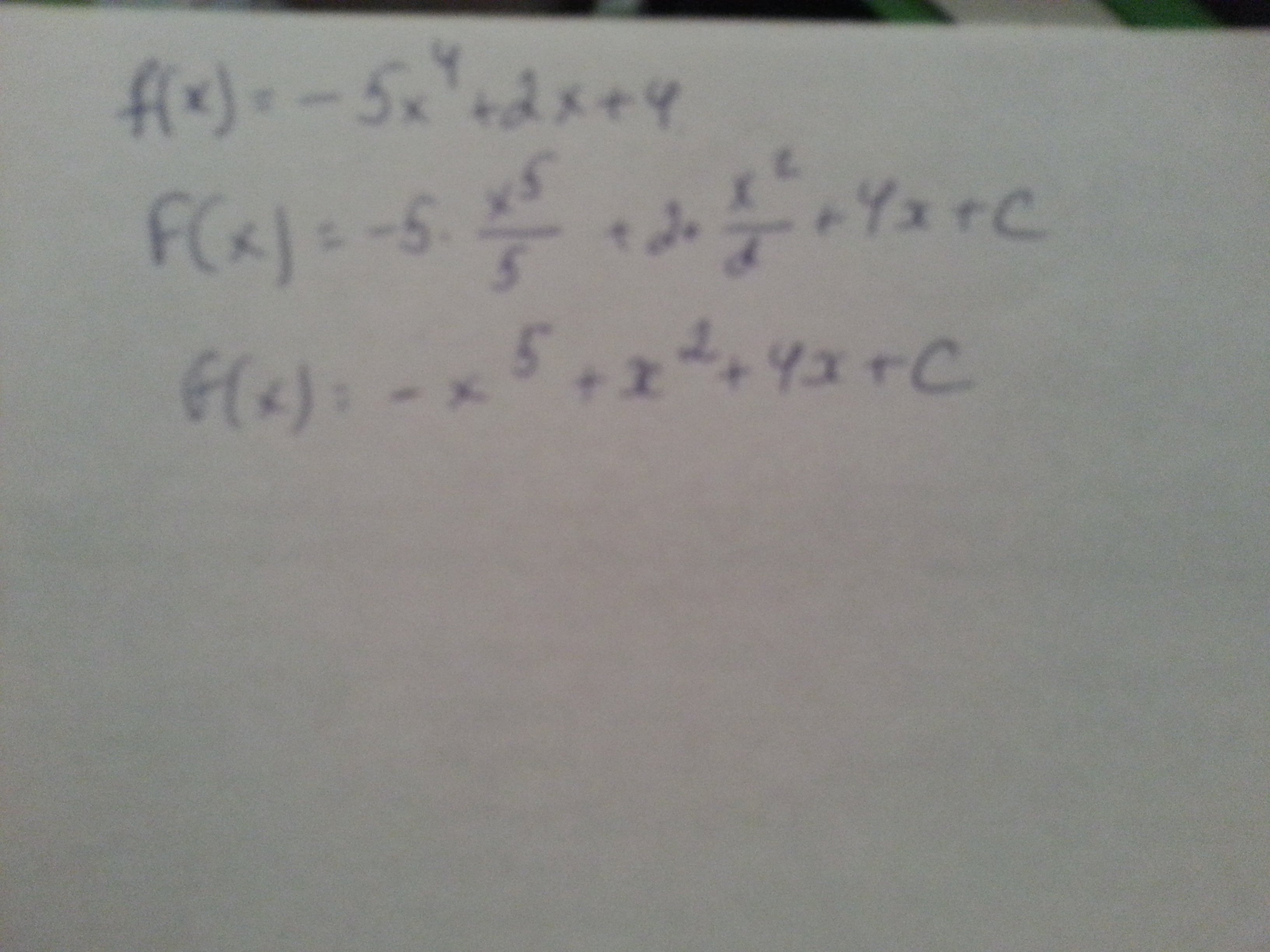 найдите общий вид первообразных для функции f(x)=-5х^4+2х-4