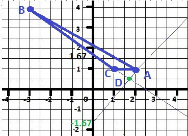 k = (Cy-By) / (Cx-Bx) = (1- 4)/(1- (-3)) = -3/4