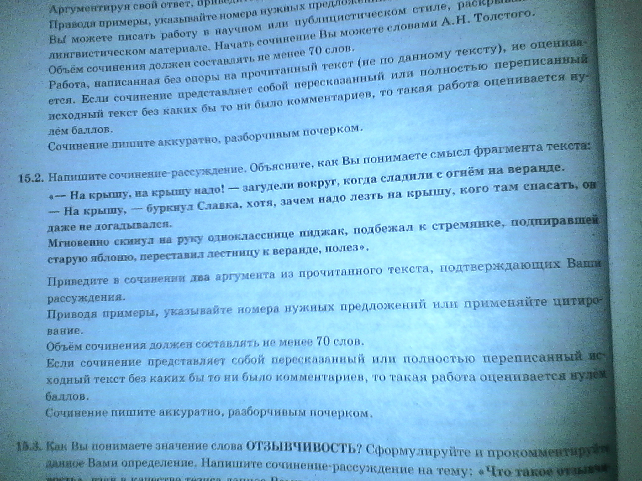 Например:Глубокая зимняя ночь. Метель. В доме — ни огня. Ветер воет в трубах, сотрясает крышу, ломится в окна. Ближний лес гудит, шатаясь под вьюгой. Никто не спит. Дети проснулись, но лежат молча, широко раскрывши глаза в темноту. Прислушиваются, вздыхают… Откуда-то издалека, из тьмы и бури, доносится длинный жалобный крик. Прозвучал и замолк… И еще раз… И еще… — Точно зовет кто-то, - тревожно шепчет мужчина. Никто ему не отвечает. — Вот опять… Слышишь?. .Как будто человек… — Спи, - сурово говорит женщина. - Это ветер. — Страшно ночью в лесу… — Это только ветер. Ты разбудишь ребенка… Но дитя вдруг подымает голову. — Я слышу, я слышу. Он кричит: "Спасите! " И правда: яростный ураган стихает на одно мгновенье, и тогда совсем ясно, близко, точно под окном, раздается протяжный, отчаянный вопль: — Спа-си-те! — Мама! Может быть, на него напали разбойники?. .Может быть… — Не болтай глупостей, - сердито прерывает мать. - Это голодный волк воет в лесу. Вот он тебя съест, если не будешь спать. — Спасите! — Жалко живую душу, - говорит муж. - Если бы не испортилось мое ружье, я пошел бы… — Лежи, дурак… Не наше дело… В темноте шлепают туфли… Старческий кашель… Пришел из соседней комнаты дедушка. Он брюзжит злобно: — Что вы тут бормочете? Спать не даете никому. Какой такой человек в лесу? Кто в эту погоду по лесам ходит? Все дома сидят. И вы сидите тихо и благодарите Бога, что заборы у нас высокие, запоры на воротах крепкие и во дворе злые собаки… А ты взяла бы лучше к себе дитя да сказкой бы его заняла. Это голос черствого благоразумия. Мать переносит в свою постель ребенка, и в тишине звучат слова монотонной, старой успокоительной сказки: — Много лет тому назад стоял среди моря остров, и на этом острове жили большие, сильные и гордые люди. Все у них было самое дорогое и лучшее, и жизнь их была разумна и спокойна. Соседи их боялись, уважали и ненавидели, потому что они сами никого не боялись, всех презирали, а уважали только самих себя. В жилах их текла не простая кровь, а голубая-голубая… — Спа-си-те! Молчание…