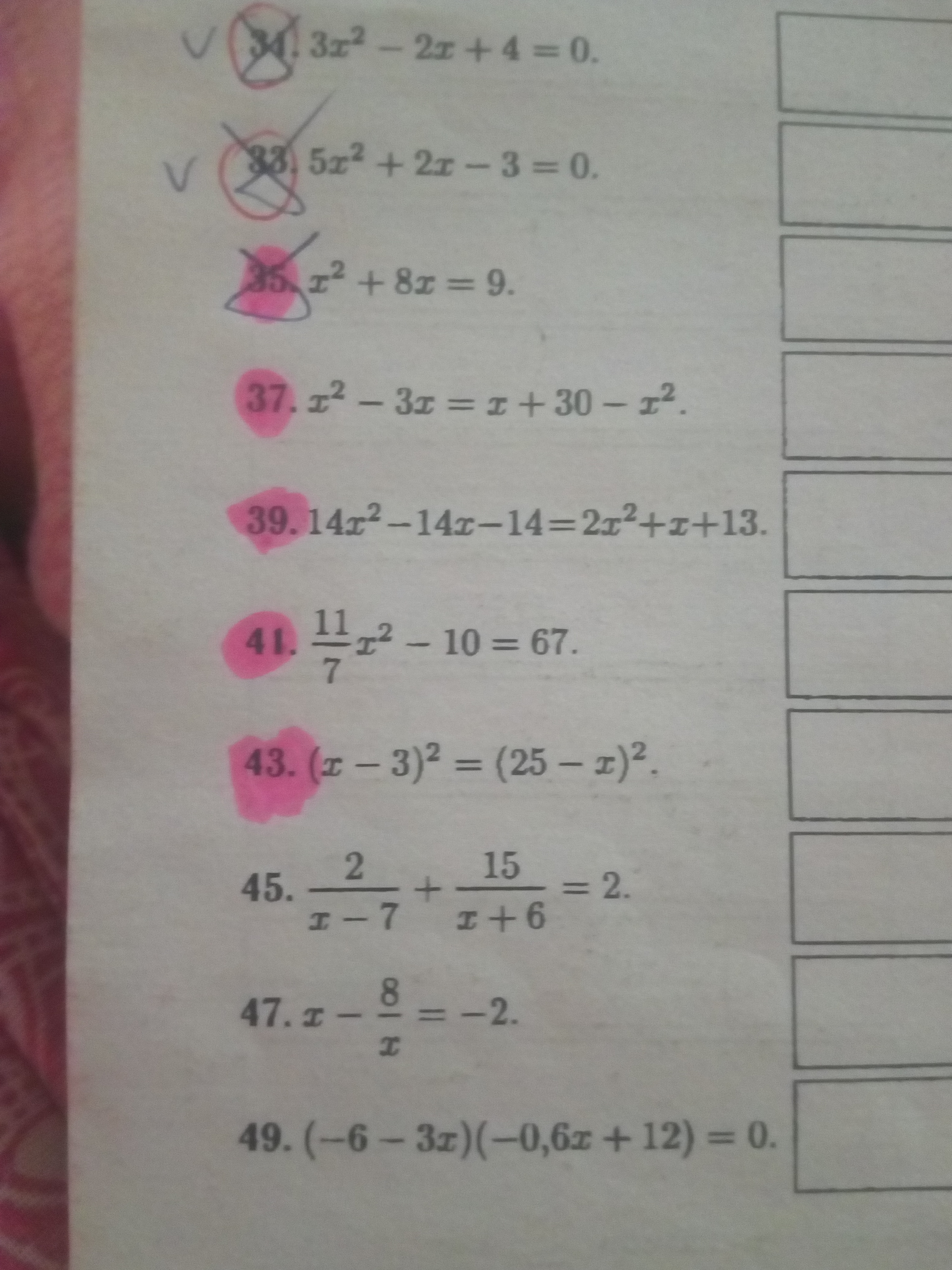тут же всё легко. проще простого, в 43 раскрой скобки и решай так же. в 41 икс в квадрате равен 49 , значит, икс равен семи