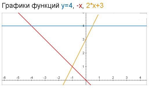 Постройте на одном чертеже график функций у=4,у=-х,у=2х+3