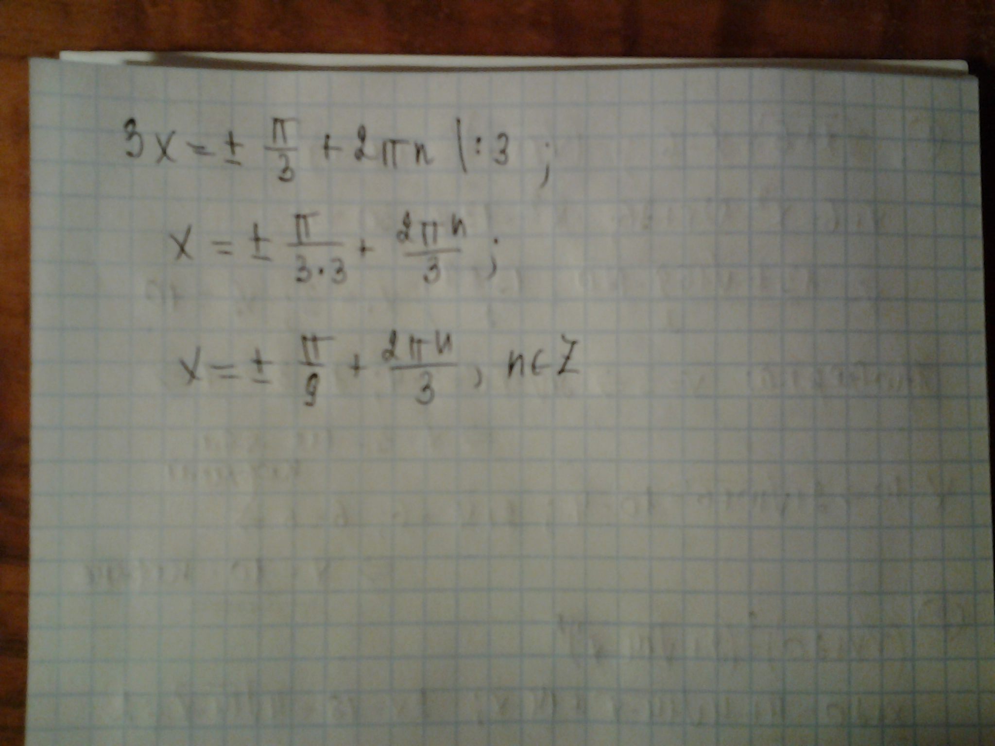 3x=+- п/3 +2пn