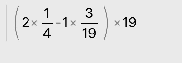 1) 2*1/4-1*3/19=1/2-3/19=19/38-6/38=13/38