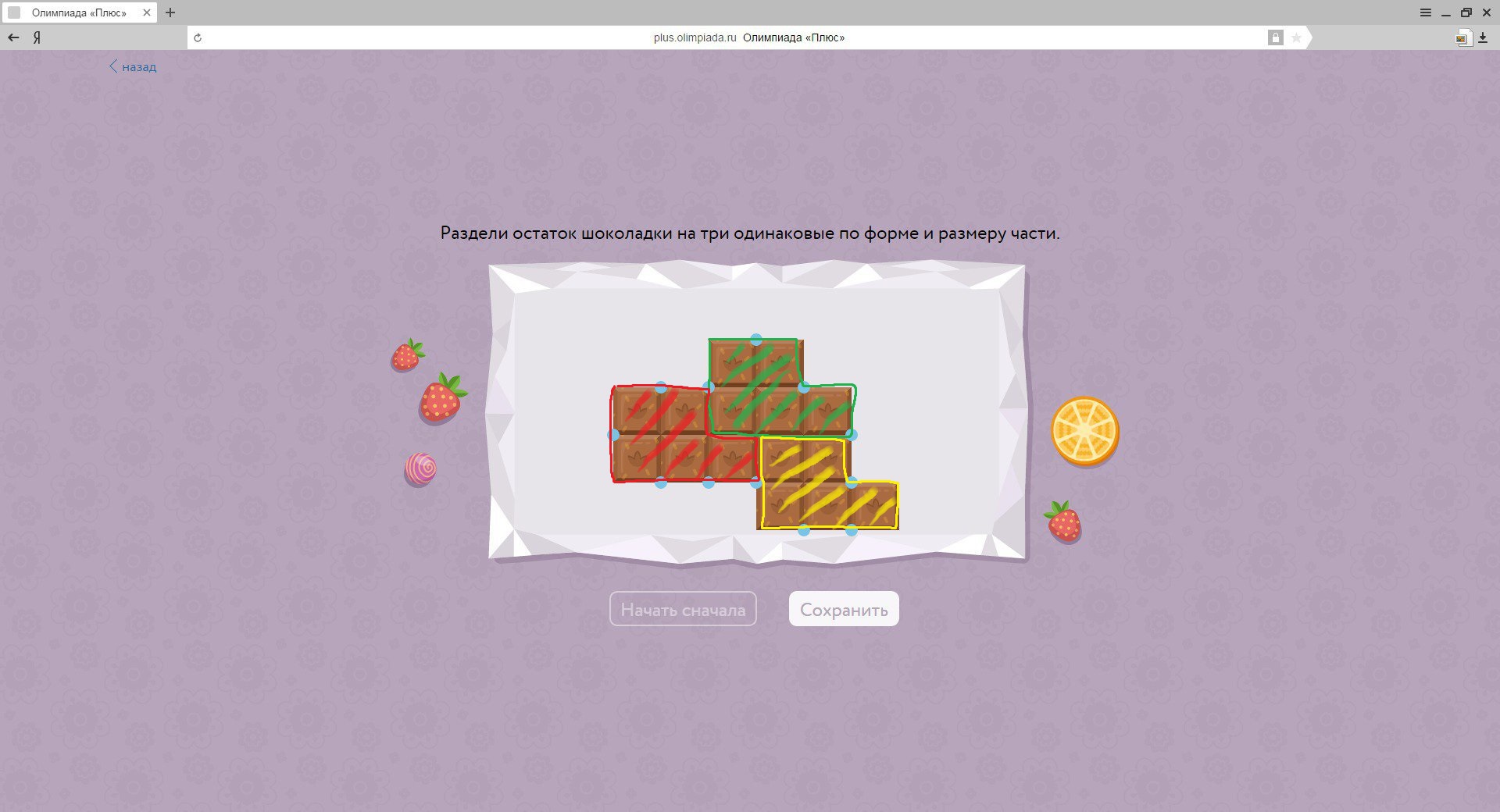 Как разделить эту шоколадку на 3 части одинаковые по размеру и форме????