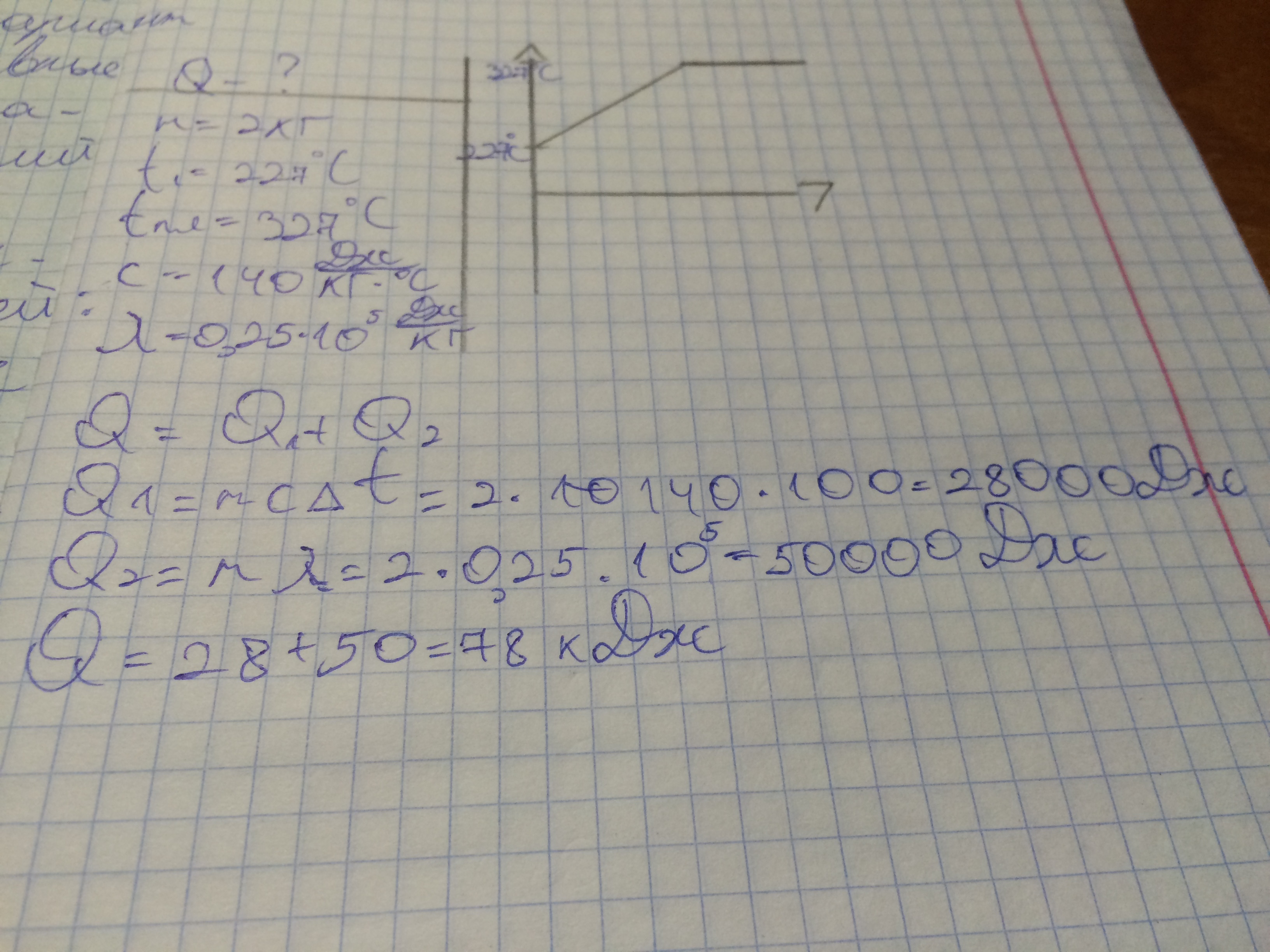 рассчитаете колечество теплоты необходимые для плавления 2 кг свинца имеющую температуру 227 градусов
