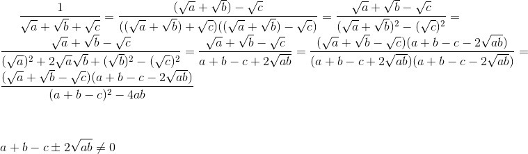 Срочно. Освободитель от иррациональности . 1/√a+√b+√c