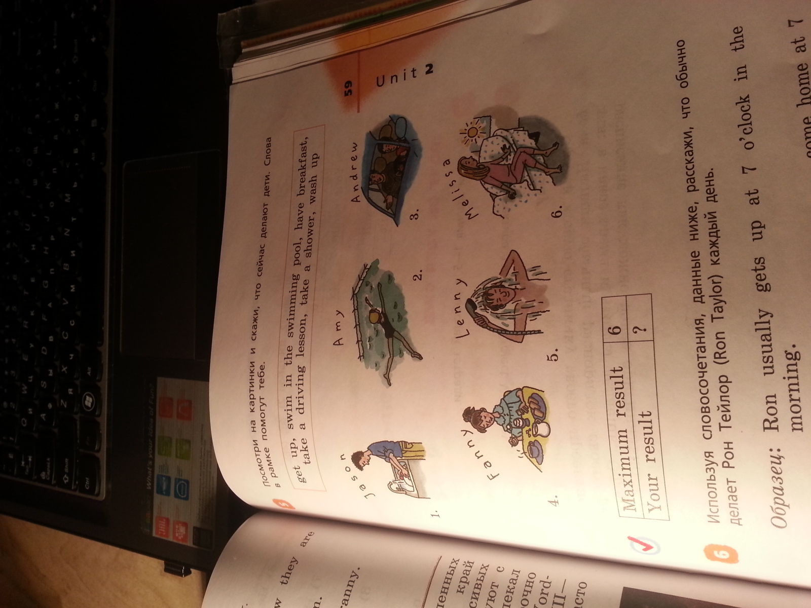 Посмотри на картинки и скажи, что сейчас делают дети. Слова в рамке помогут тебе