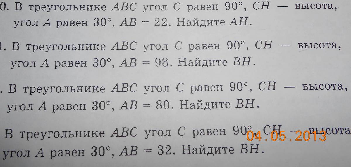 ΔАВС~ΔАСН, так как они оба - прямоугольные и имеют один общий острый угол А, значит: