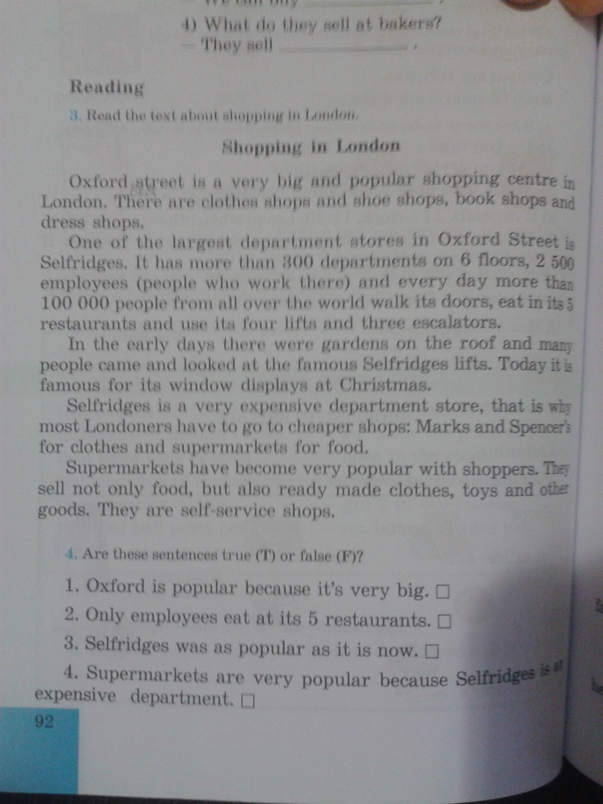Шелфридж это очень дорогой магазин, поэтому многие жители Лондона ходят в дешёвые магазины, такие как Марк и Спэнсер:одежда и в супермаркеты. Супермаркеты так же популярны как и магазины с одеждой. В них продается не только одежда, но и некоторые вещи и игрушки и много другое. Но в них самообслуживание.