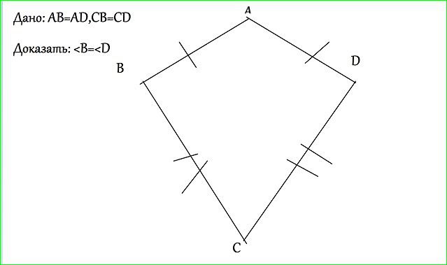 проведём прямую АС,треугольники АВС и АДС будут равны по трём сторонам (исходя из дано и АС-общая)