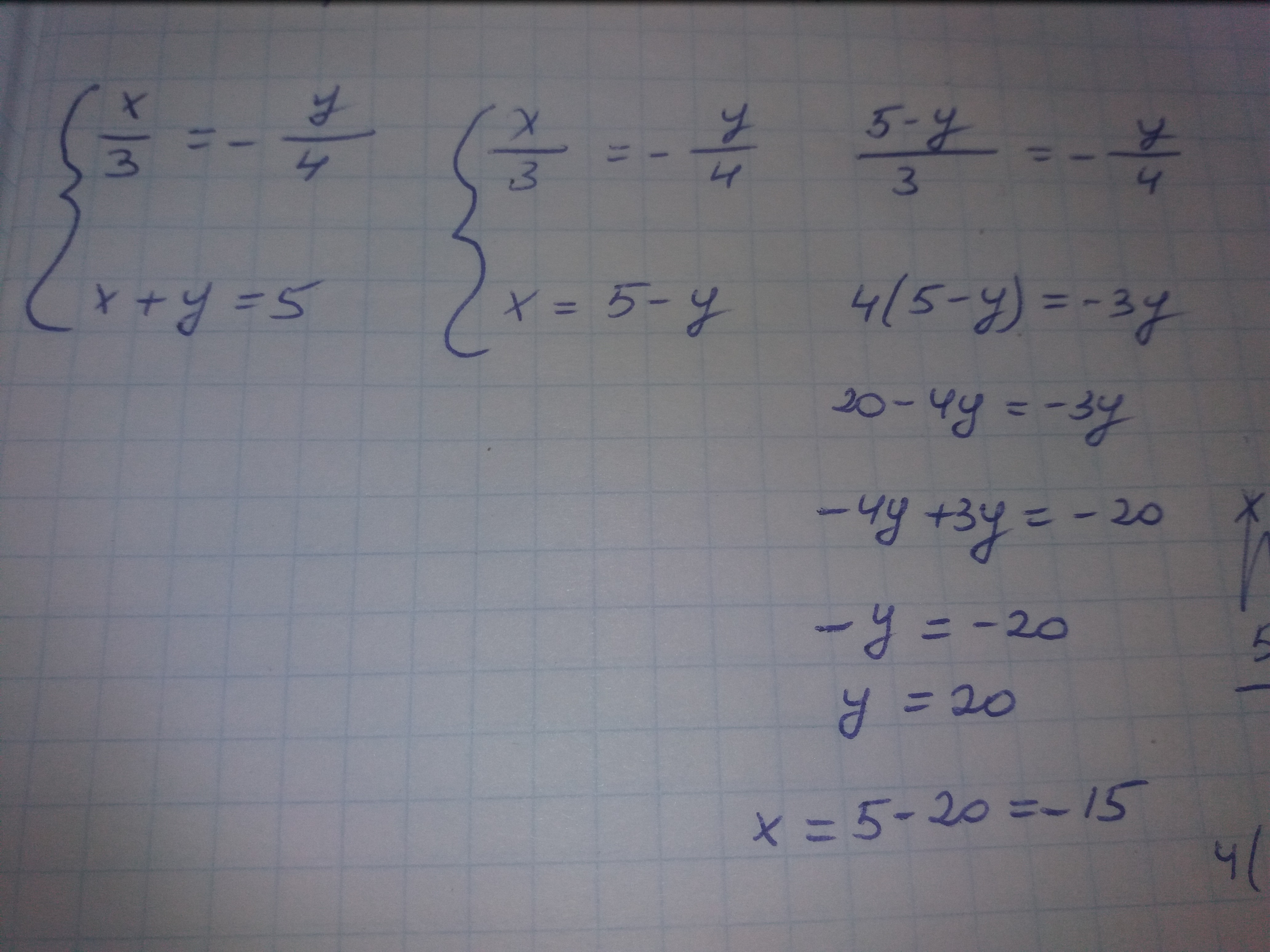 4(5-y)=-3y