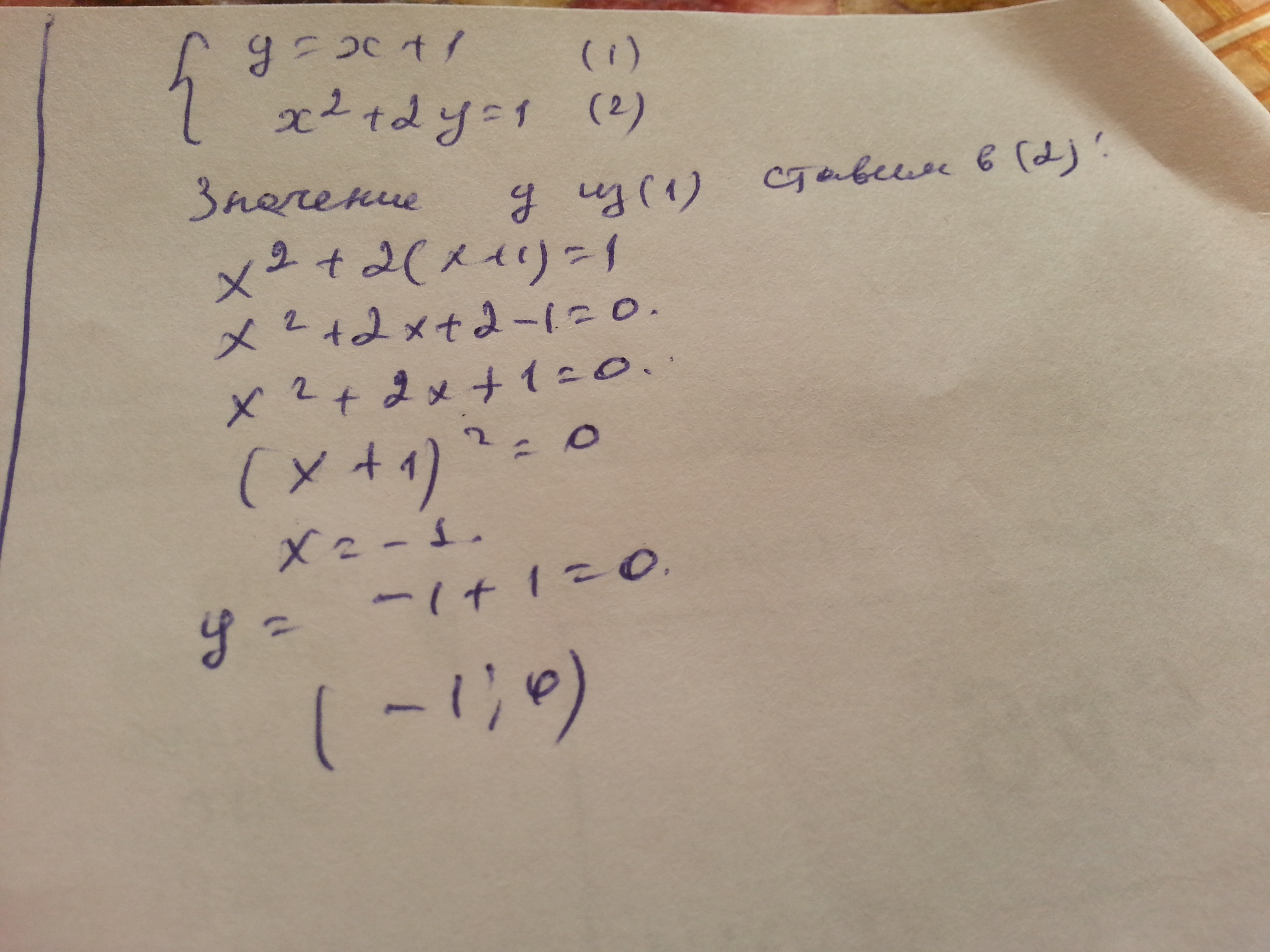 решить систему уравнений методом подстановки y=x+1 b x^+2y=1