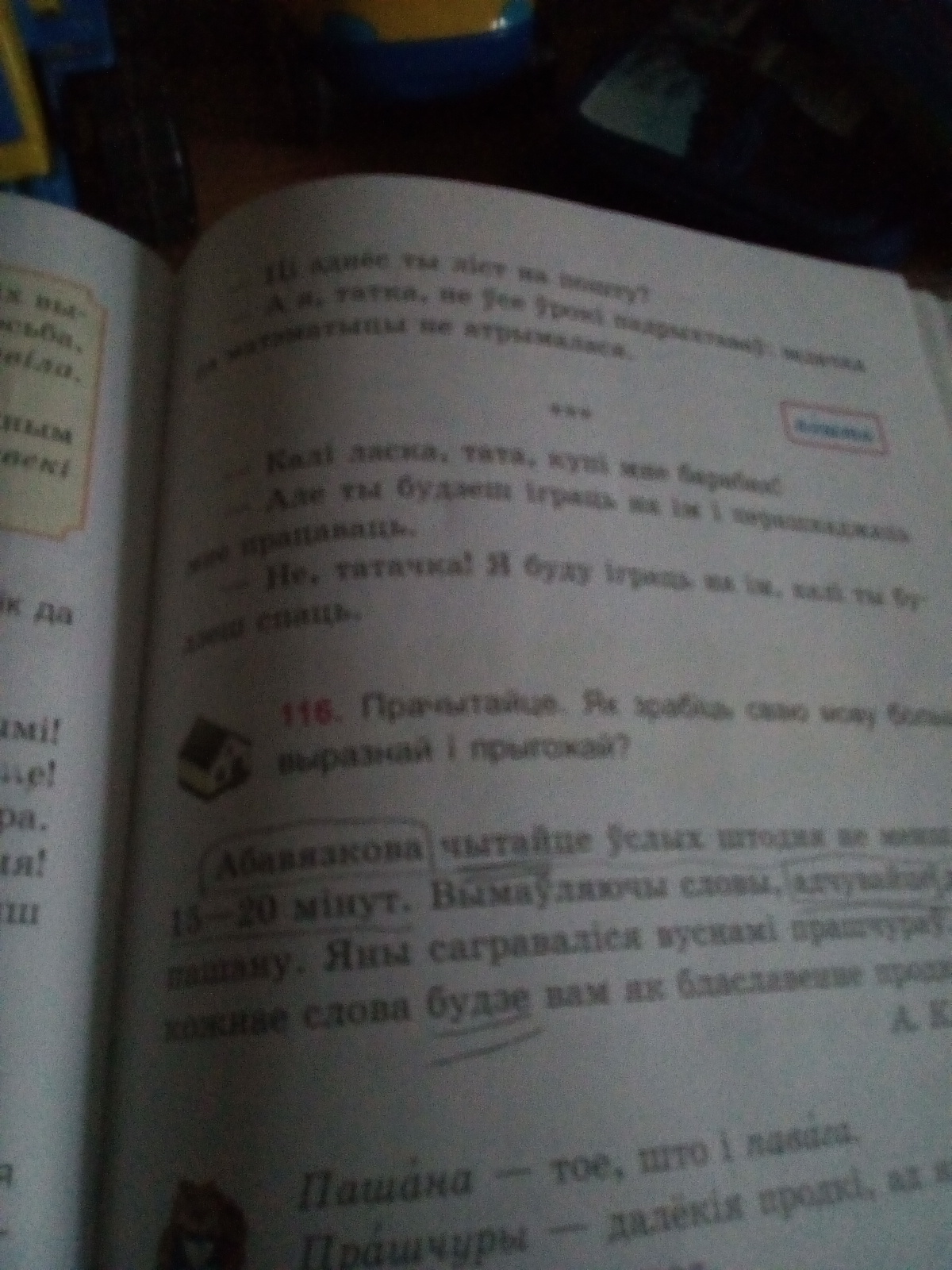 Абавязкова чытайце услых штодня не менш як15-20мтнут. Вымауляючы словы, адчувайце да их пашану. Яны сагравалися вуснами прашчурау. Хай кожнае слова будзе вам як блаславенне продкау. Падкрэслицесловы, па яких вы адращу пазнали пабуджальныя сказы.