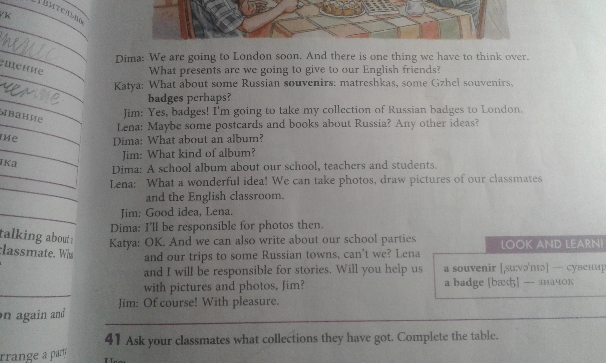 Read the dialogue and say what the Russian students are going to present to their English friends