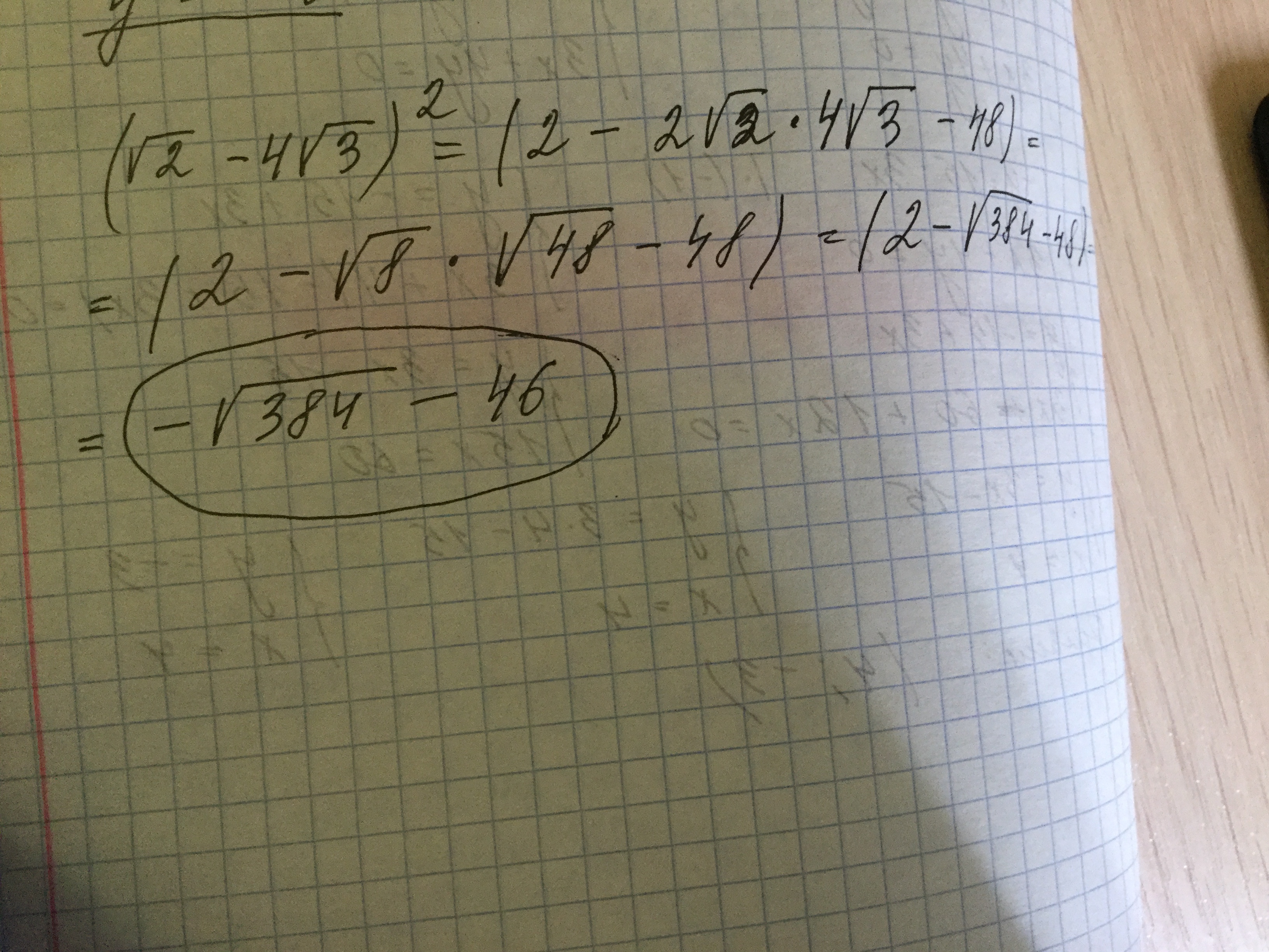 Упрости выражение (√2−4√3)^2
