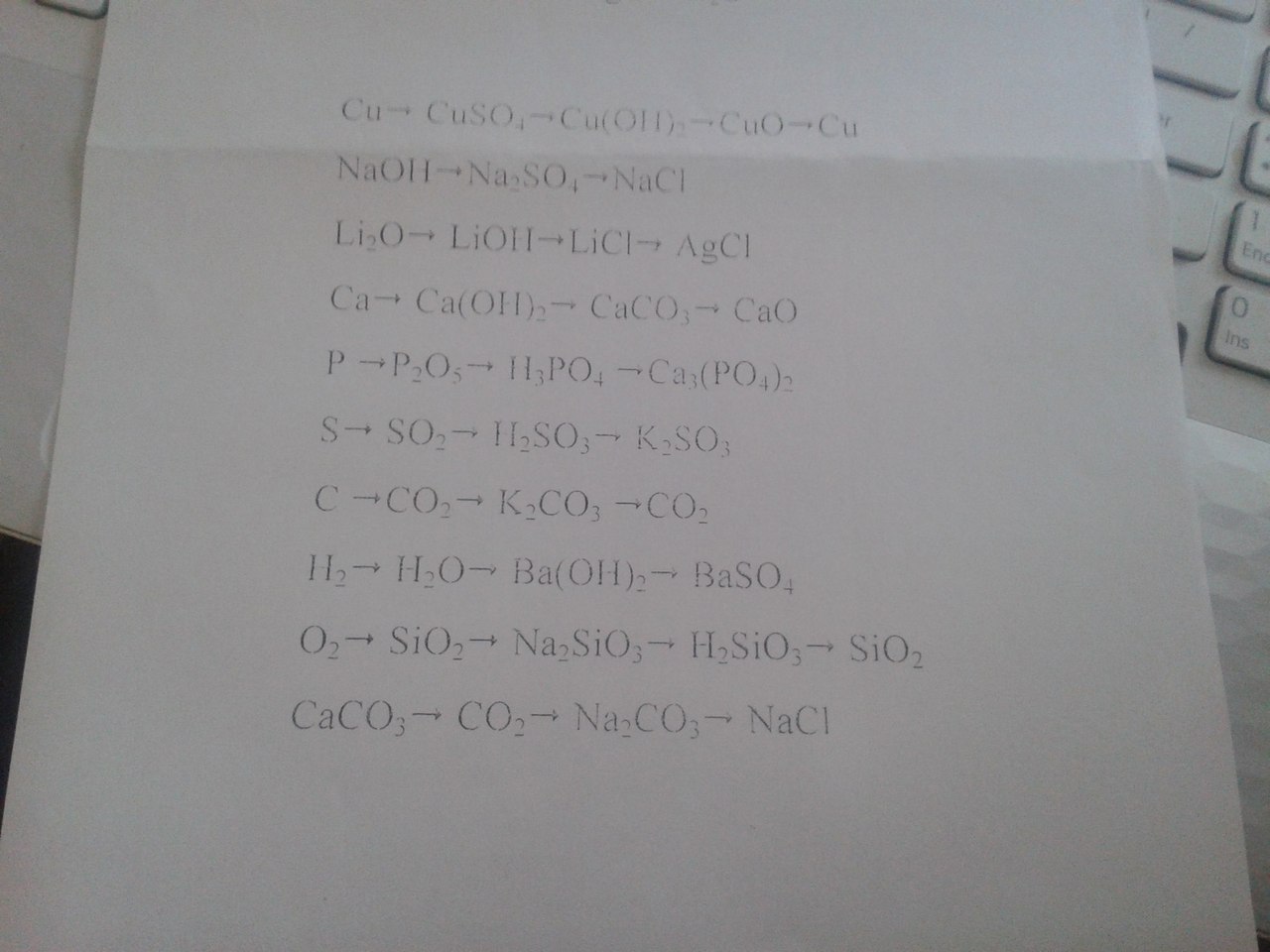CaCO3 --- > CO2 --- > Na2CO3 -- > NaCl